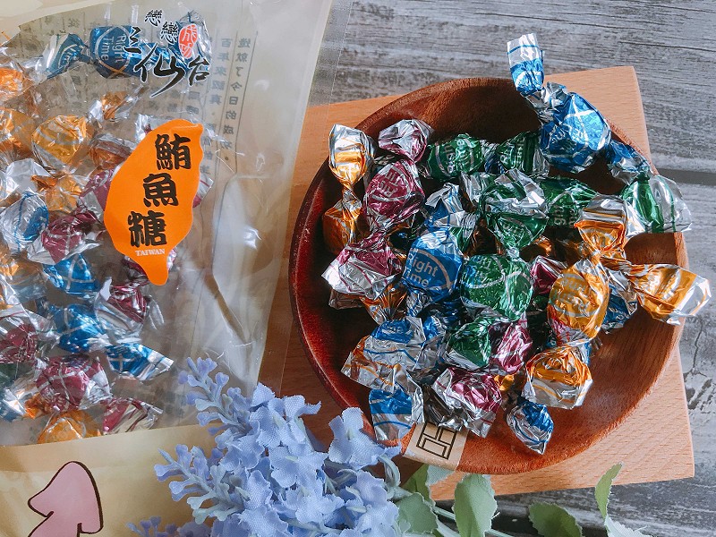 "傳統小零嘴,大人小孩都愛吃的好滋味 每一顆都以彩色鋁薄紙包裝"